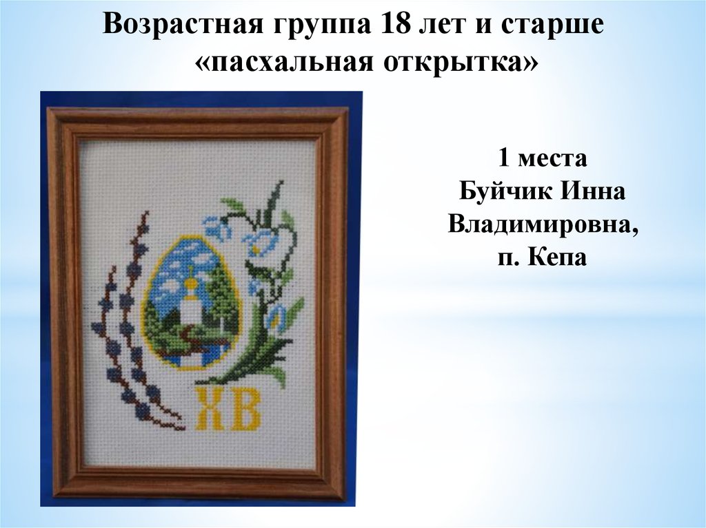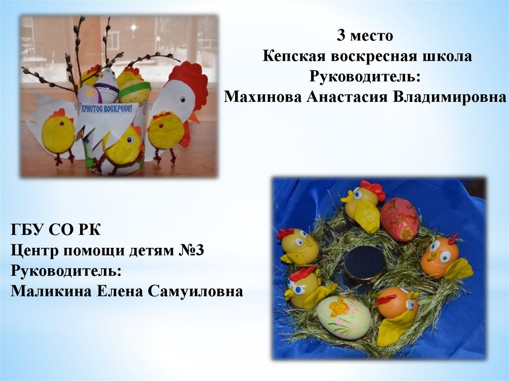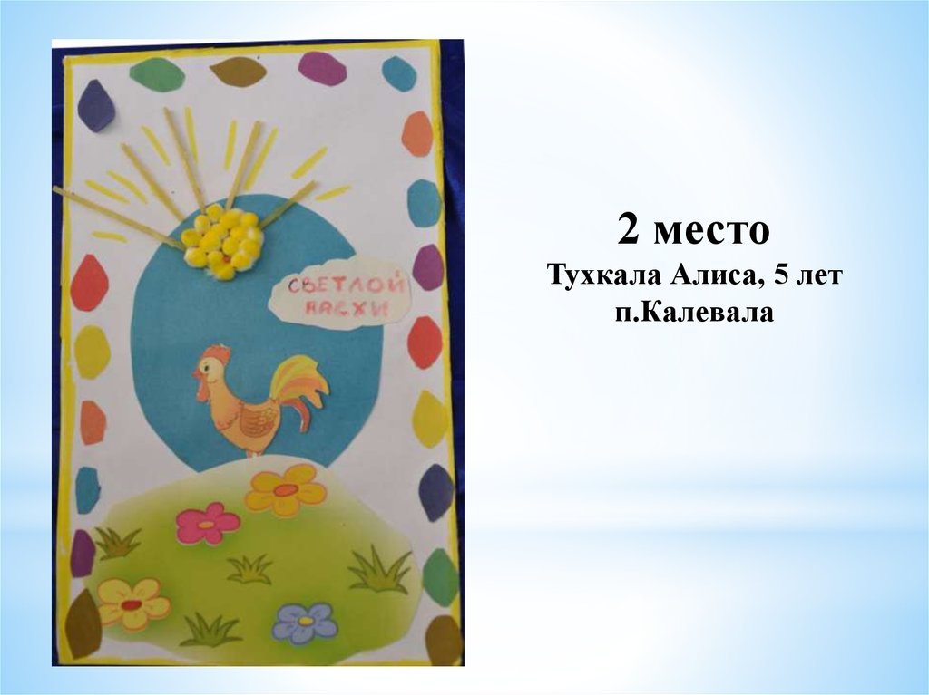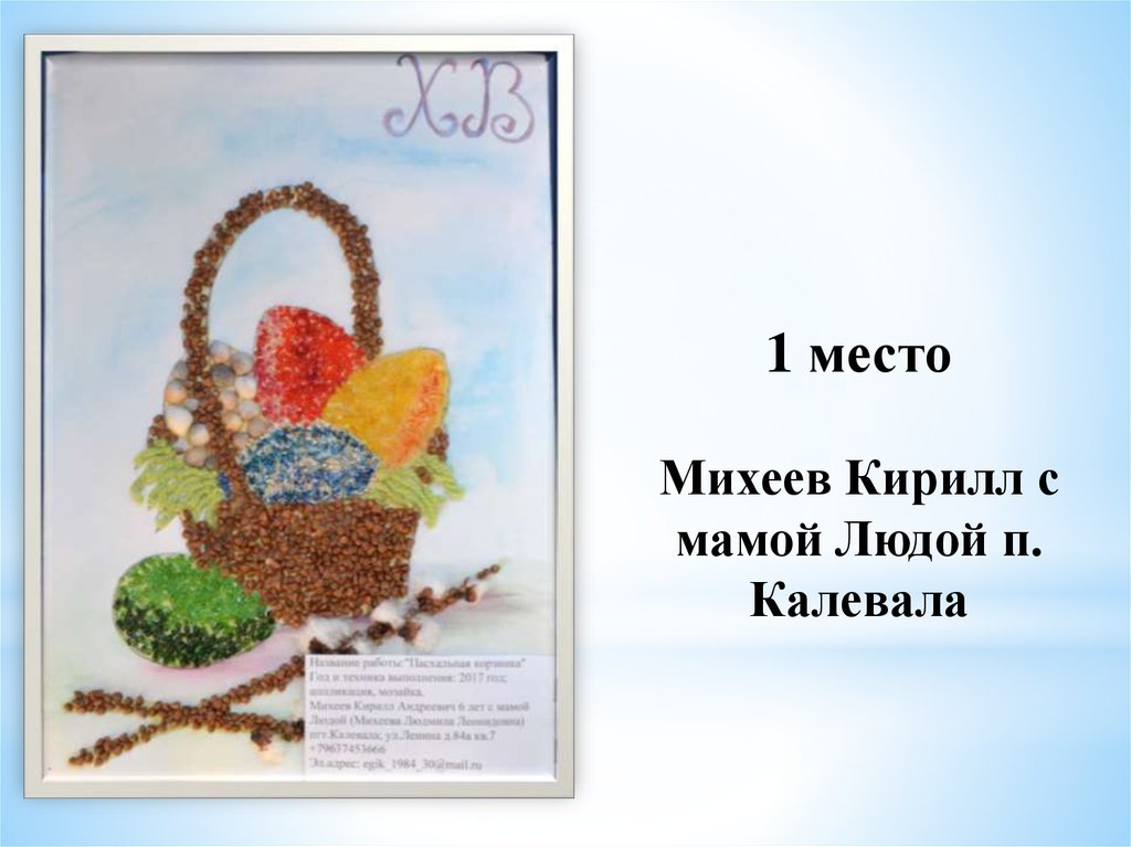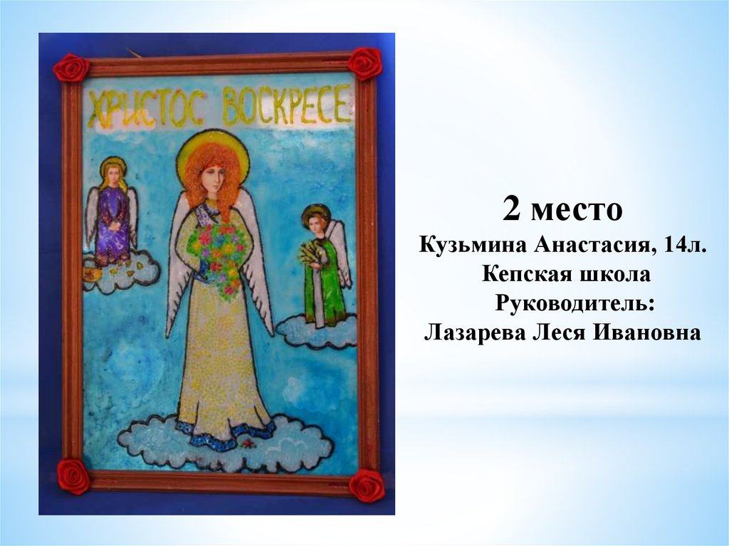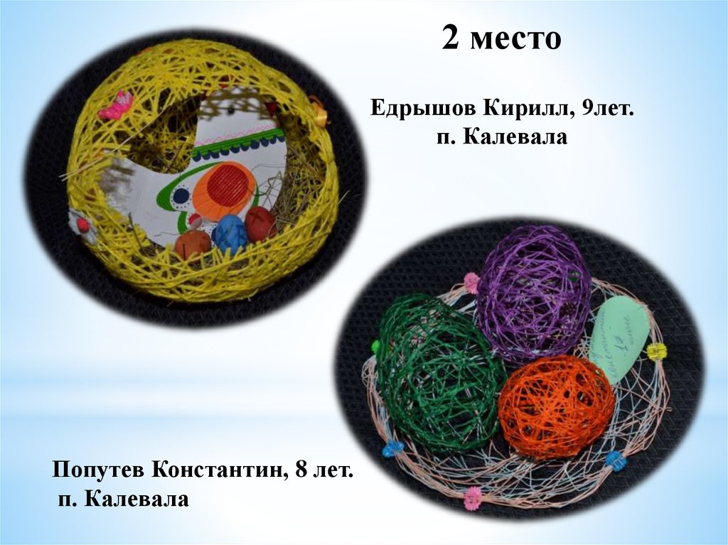 «Пасхальное яйцо»1 место Тиликайнен Наталья, 16 л . Кепская воскресная школа