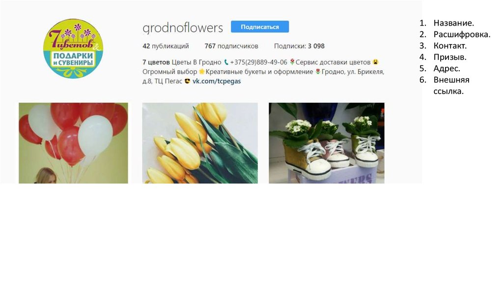 • 1 хэштег обязательно должен являться названием аккаунта.