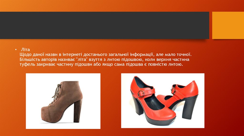 Більшість авторів називає "літа" взуття з литою підошвою, коли верхня частина