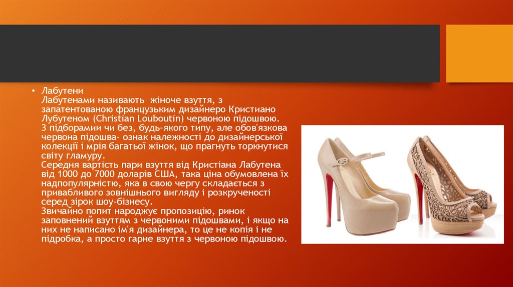 • ЛабутениЛабутенами називають жіноче взуття, з