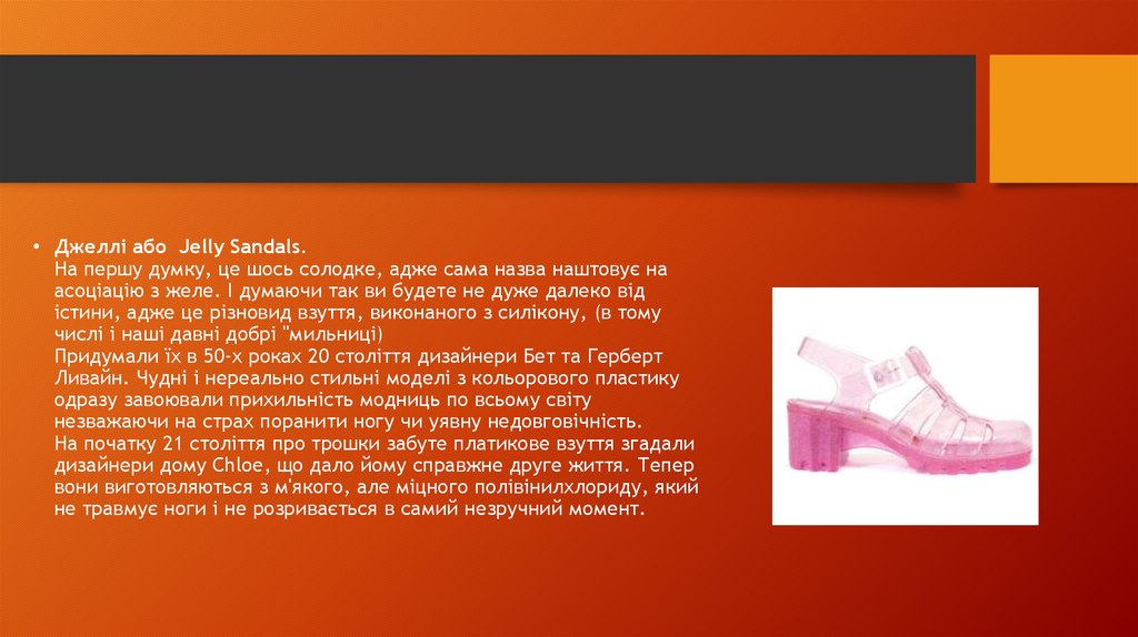 • Джеллі або Jelly Sandals.На першу думку, це шось солодке, адже сама назва наштовує на