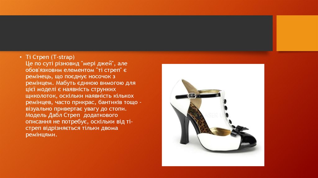 • Ті Стреп (Т-strap)Це по суті різновид "мері джей", але
