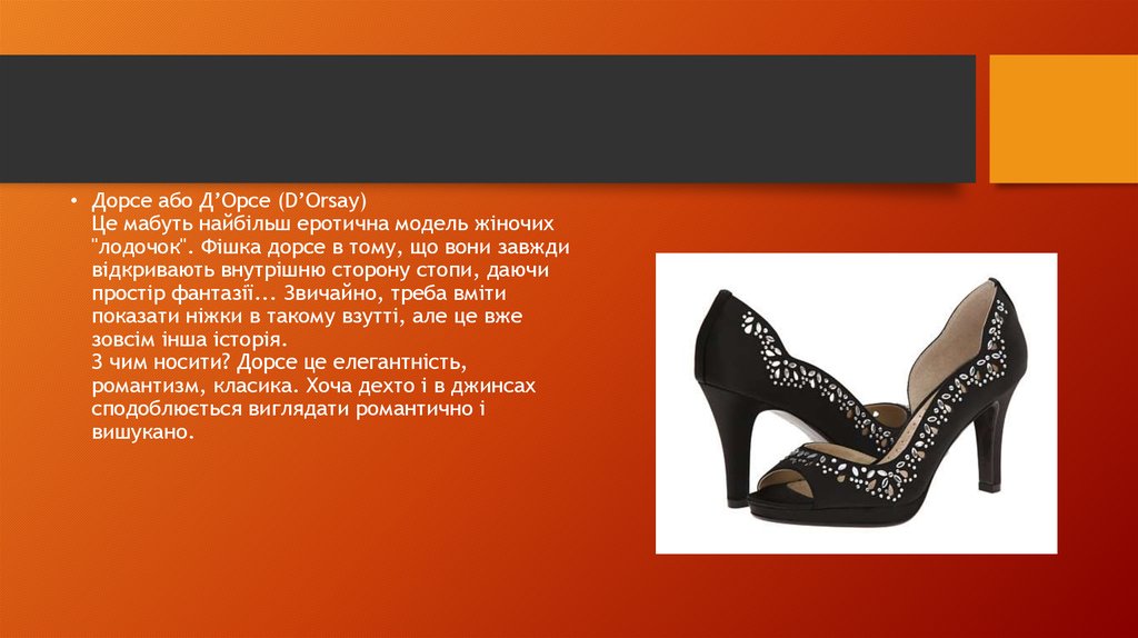 • Дорсе або Д’Орсе (D’Orsay)Це мабуть найбільш еротична модель жіночих