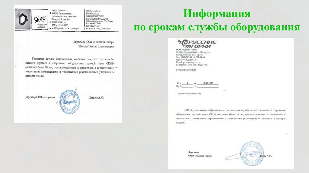 Информацияпо срокам службы оборудования