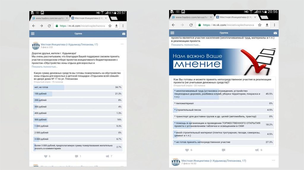 7. Результаты интернет-голосования в социальной сети ВКонтакте группа Местная Инициатива (г.Кудымкар,Плеханова, 17) https://vk.com/iniciativaplechanova