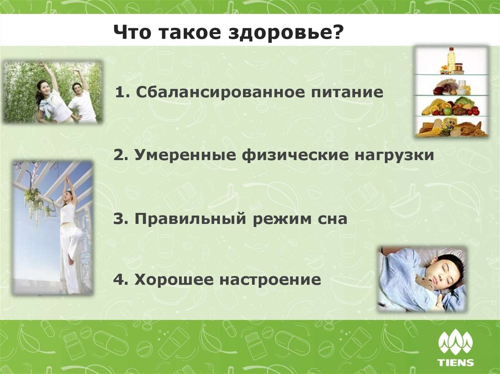 Что такое здоровье?1. Сбалансированное питание