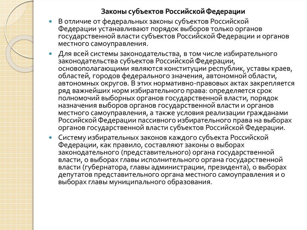 Законы субъектов Российской ФедерацииВ отличие от федеральных законы субъектов Российской