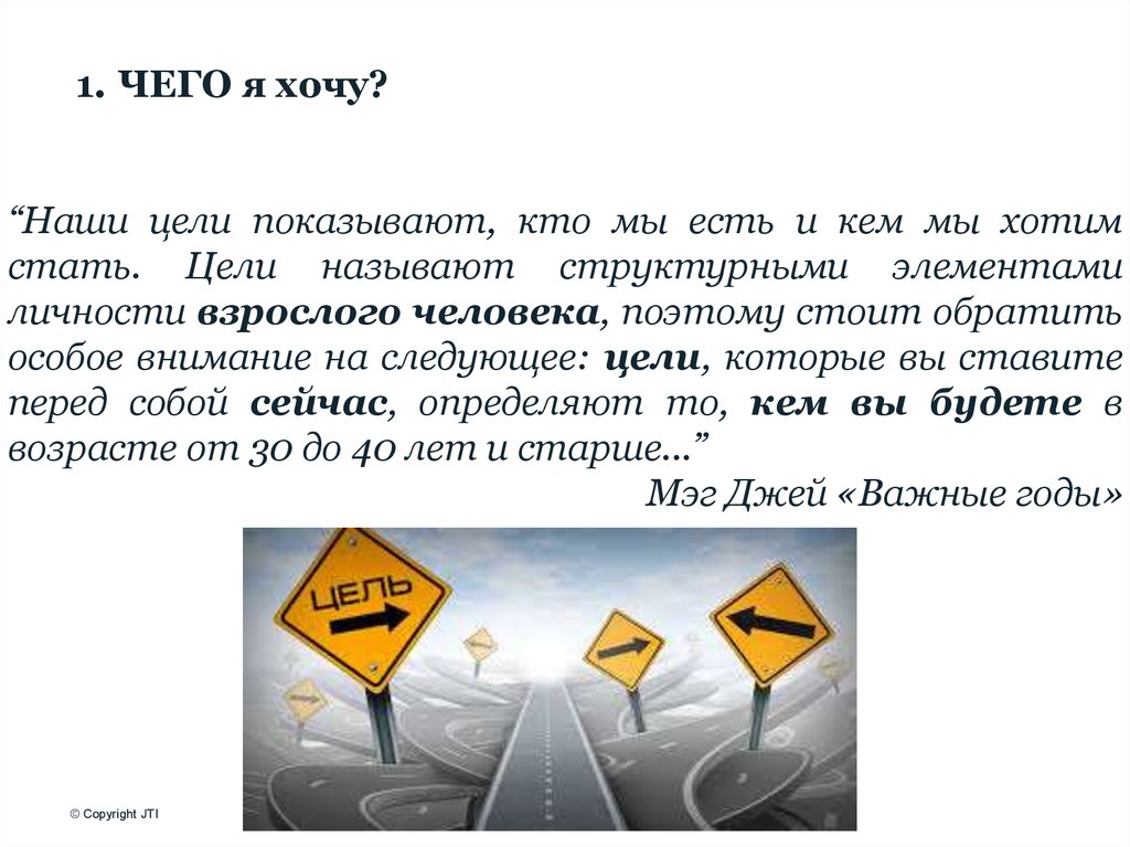 1. ЧЕГО я хочу?“Наши цели показывают, кто мы есть и кем мы хотим