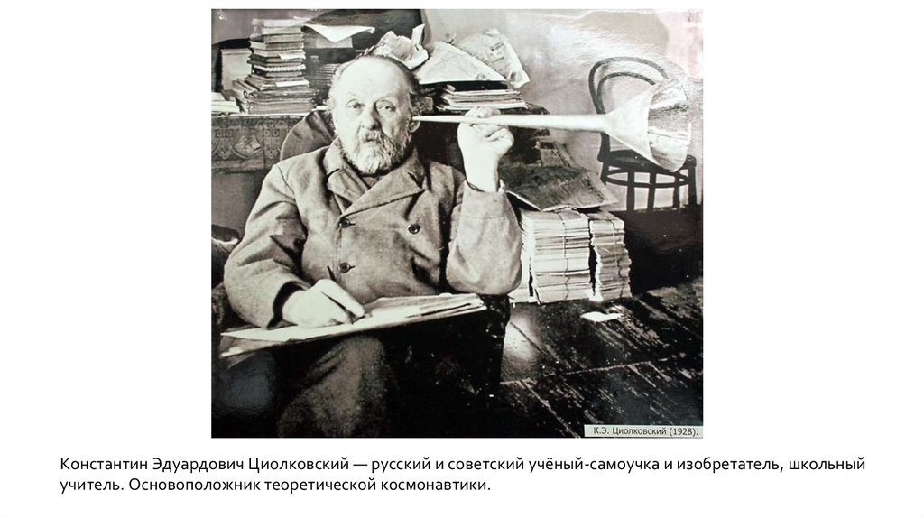 Константин Эдуардович Циолковский — русский и советский учёный-самоучка и изобретатель, школьныйучитель. Основоположник теоретической космонавтики.