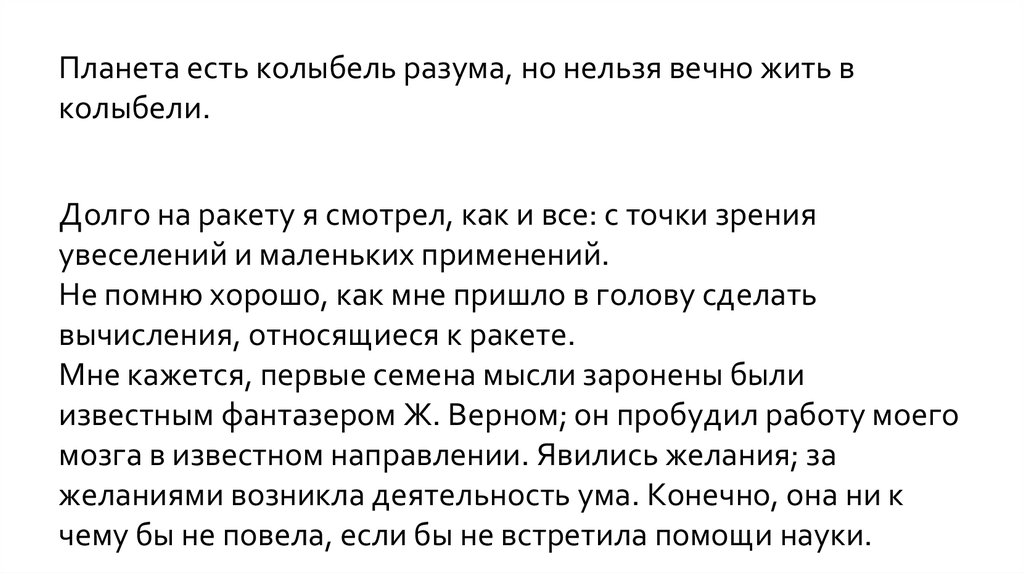 Планета есть колыбель разума, но нельзя вечно жить вколыбели.