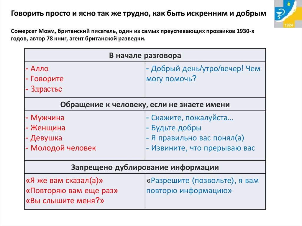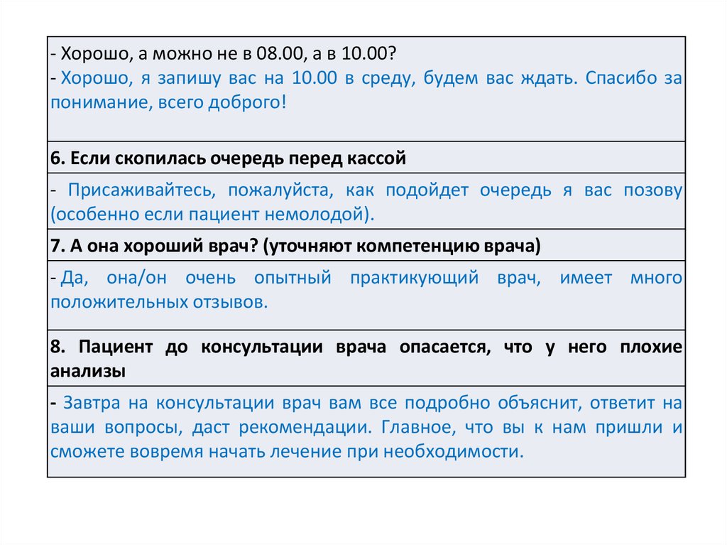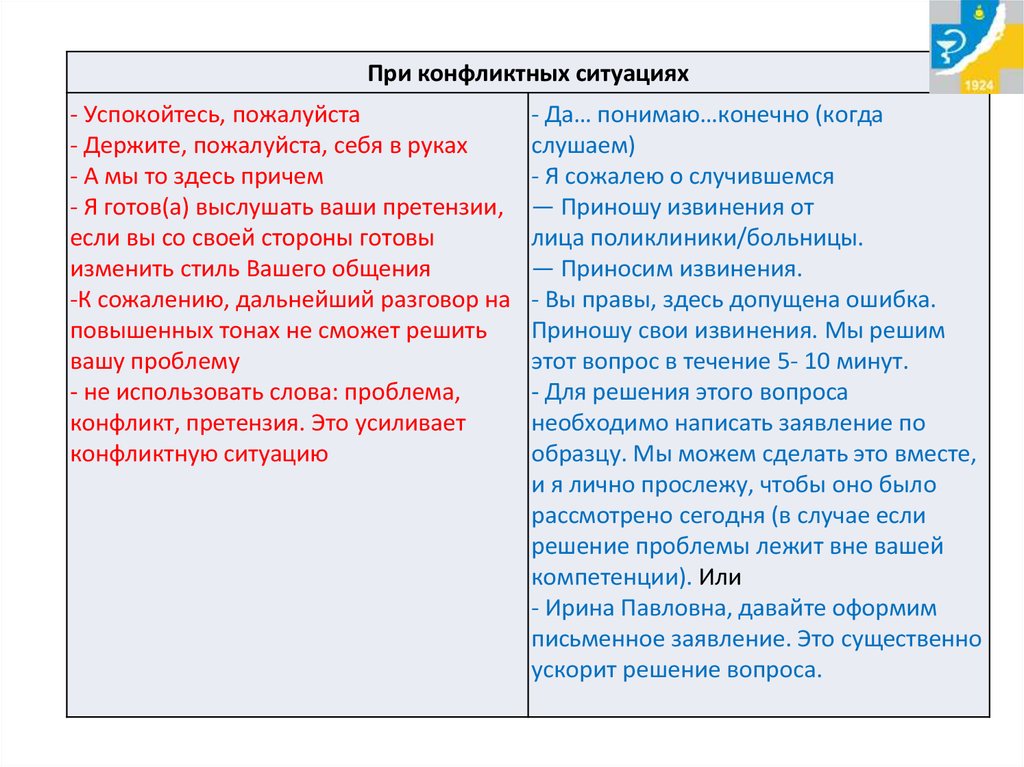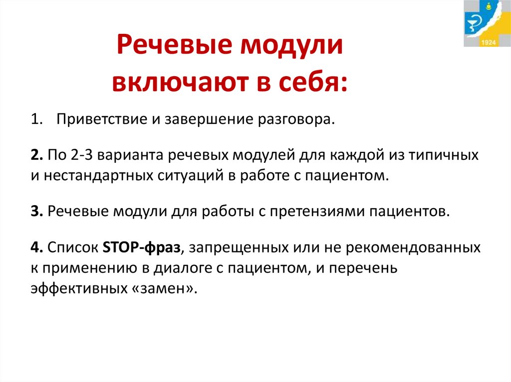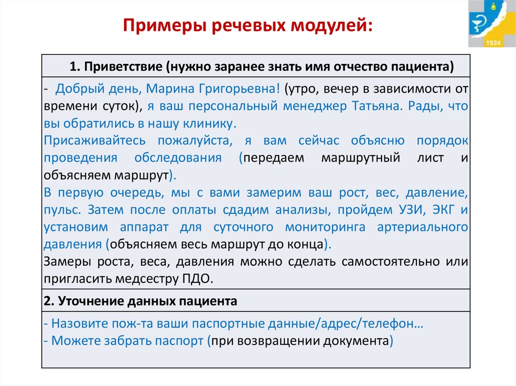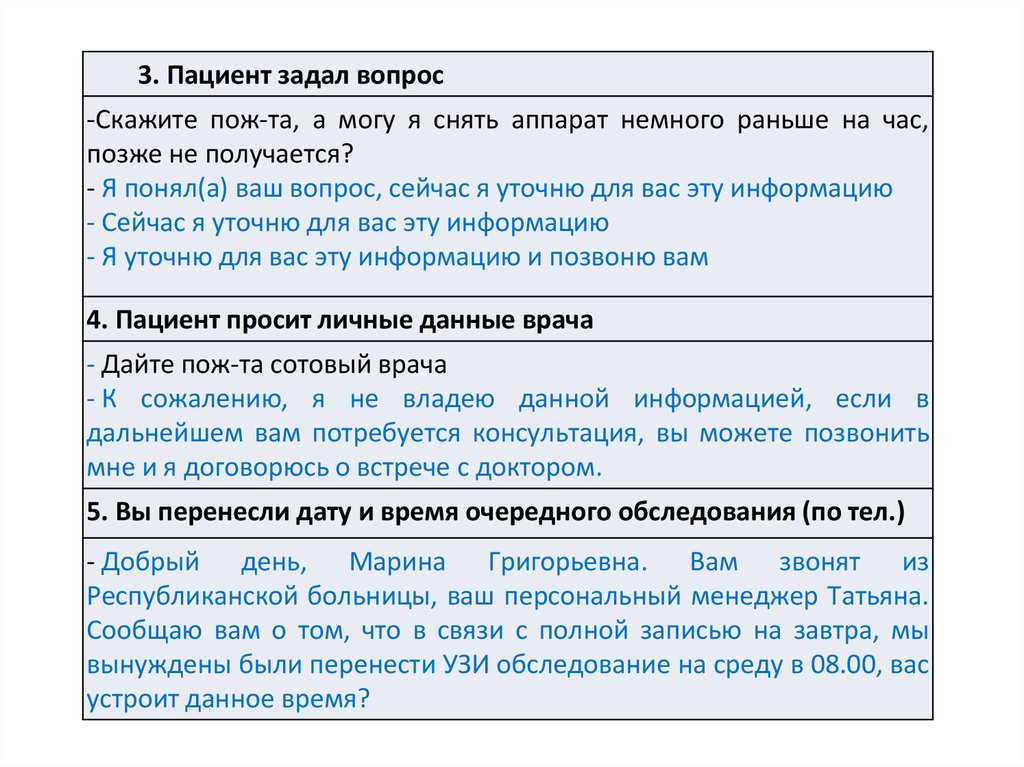 3. Речевые модули для работы с претензиями пациентов.
