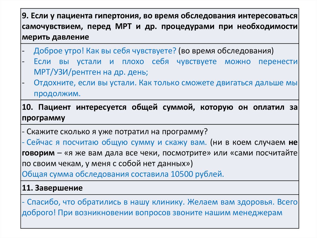 10. Пациент интересуется общей суммой, которую он оплатил за
