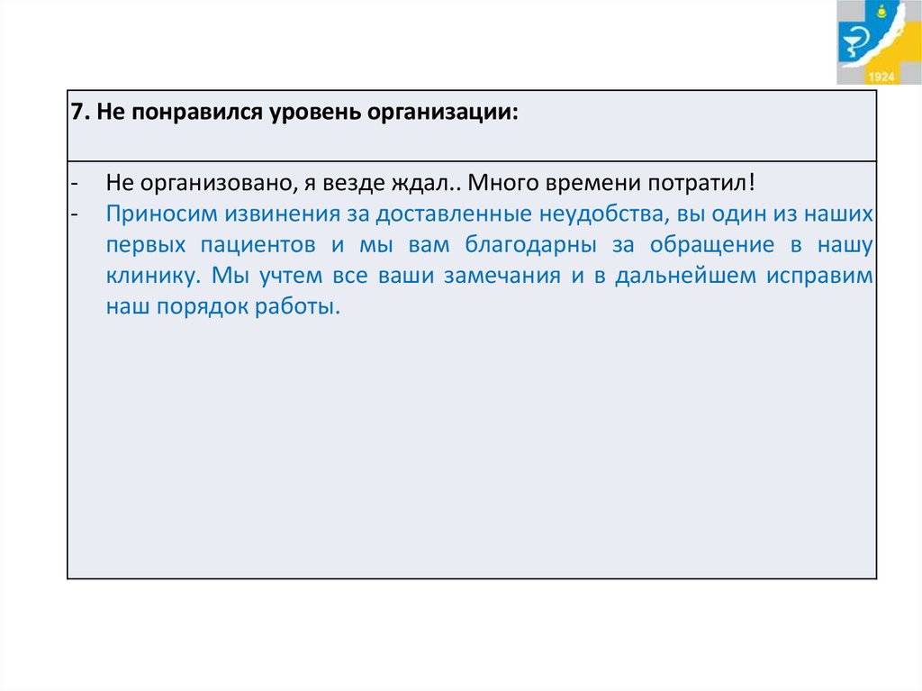 7. Не понравился уровень организации:-