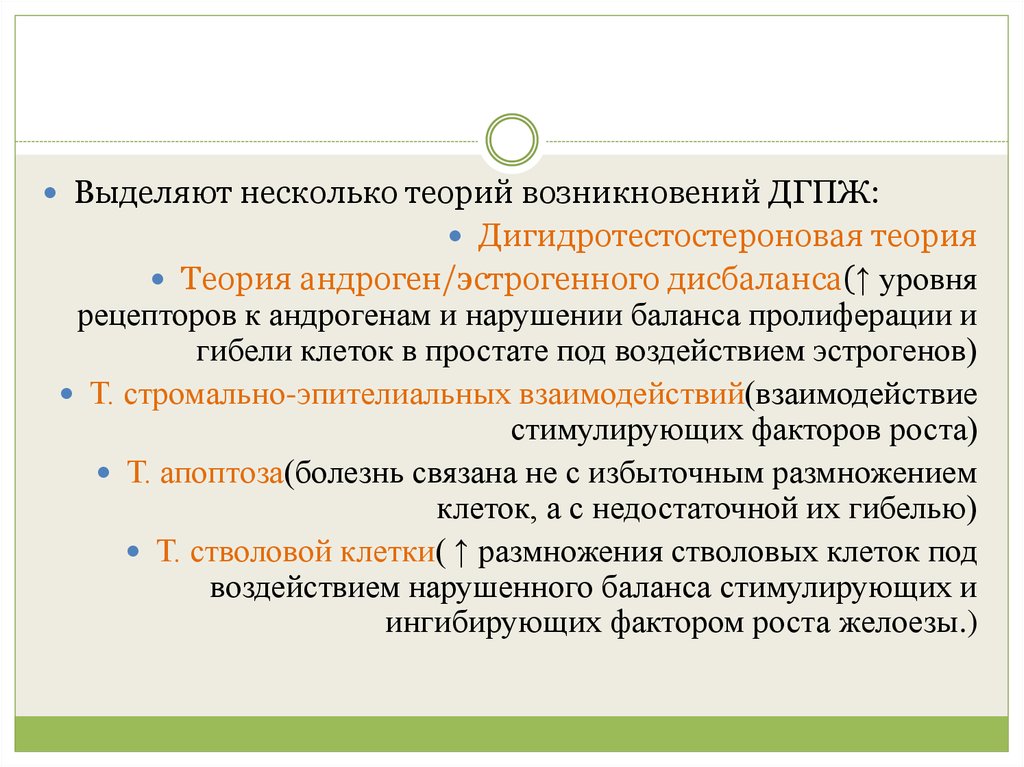 Выделяют несколько теорий возникновений ДГПЖ:Дигидротестостероновая теория