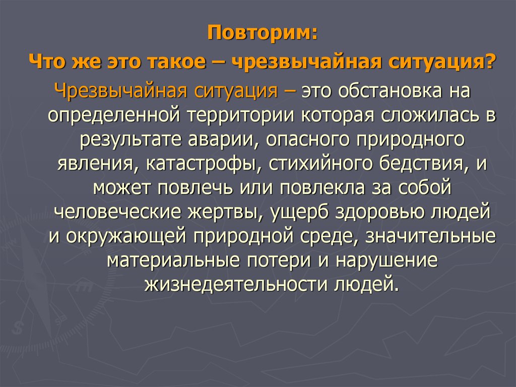 Повторим:Что же это такое – чрезвычайная ситуация?