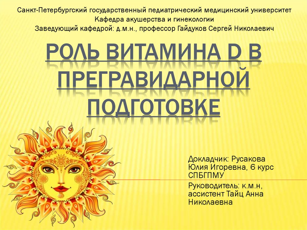 Санкт-Петербургский государственный педиатрический медицинский университетКафедра акушерства и гинекологии