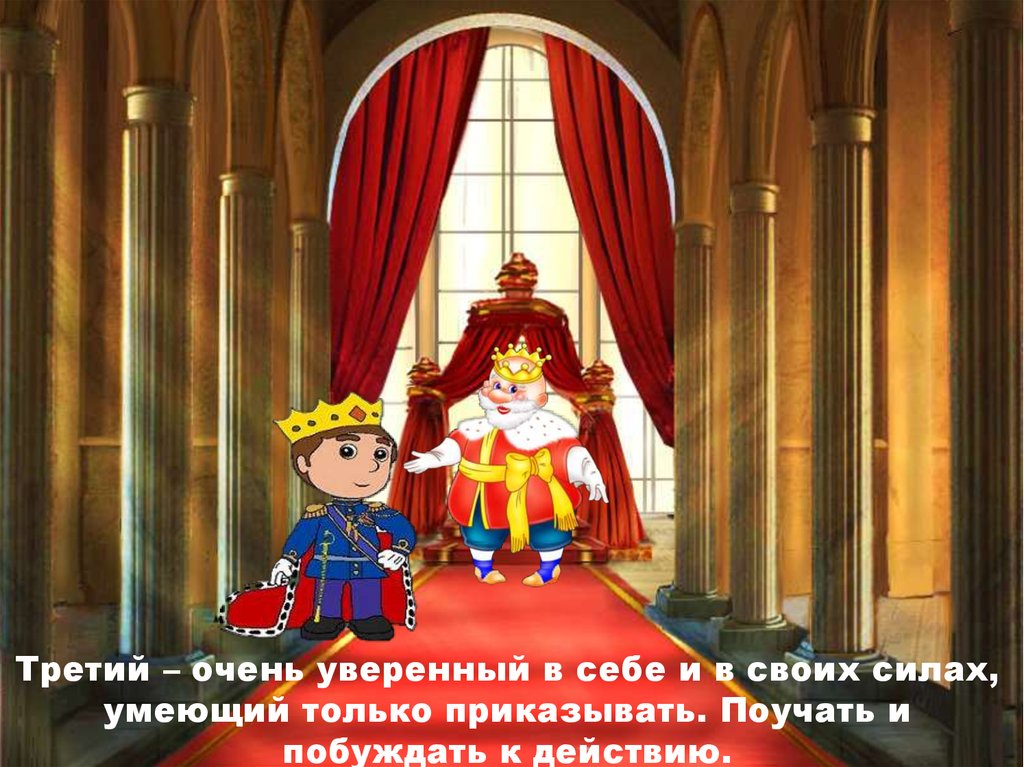 Третий – очень уверенный в себе и в своих силах,умеющий только приказывать. Поучать и