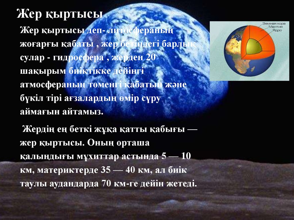 жер қыртысы. Оның орташа