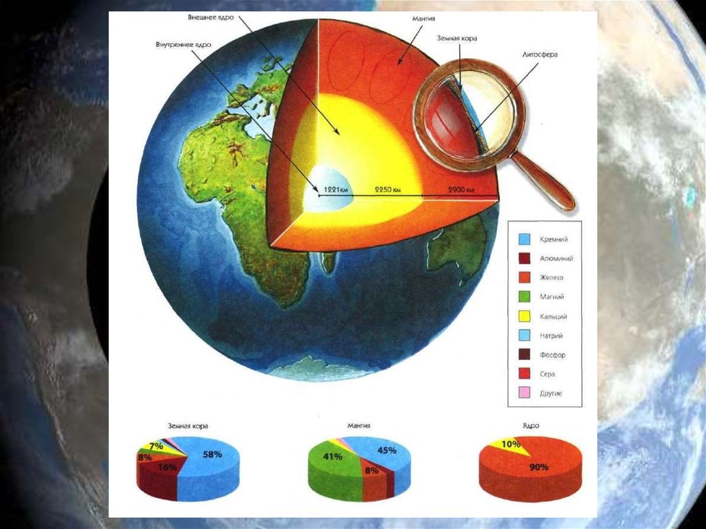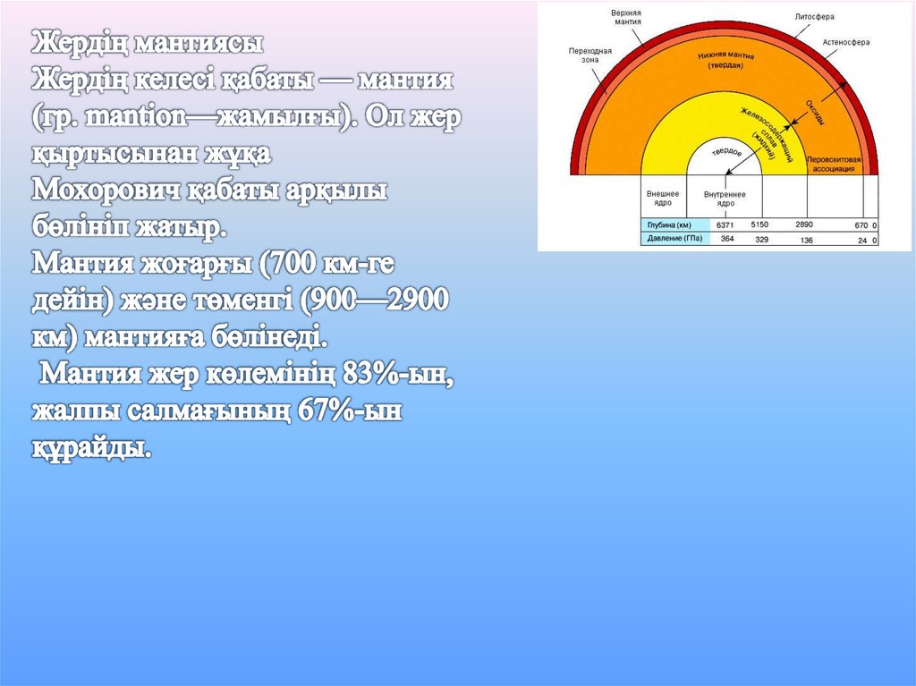 Жер көлемінің 83%-ын,жалпы салмағының 67%-ын