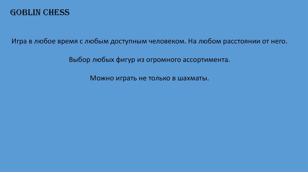 Goblin ChessИгра в любое время с любым доступным человеком. На любом расстоянии от него.