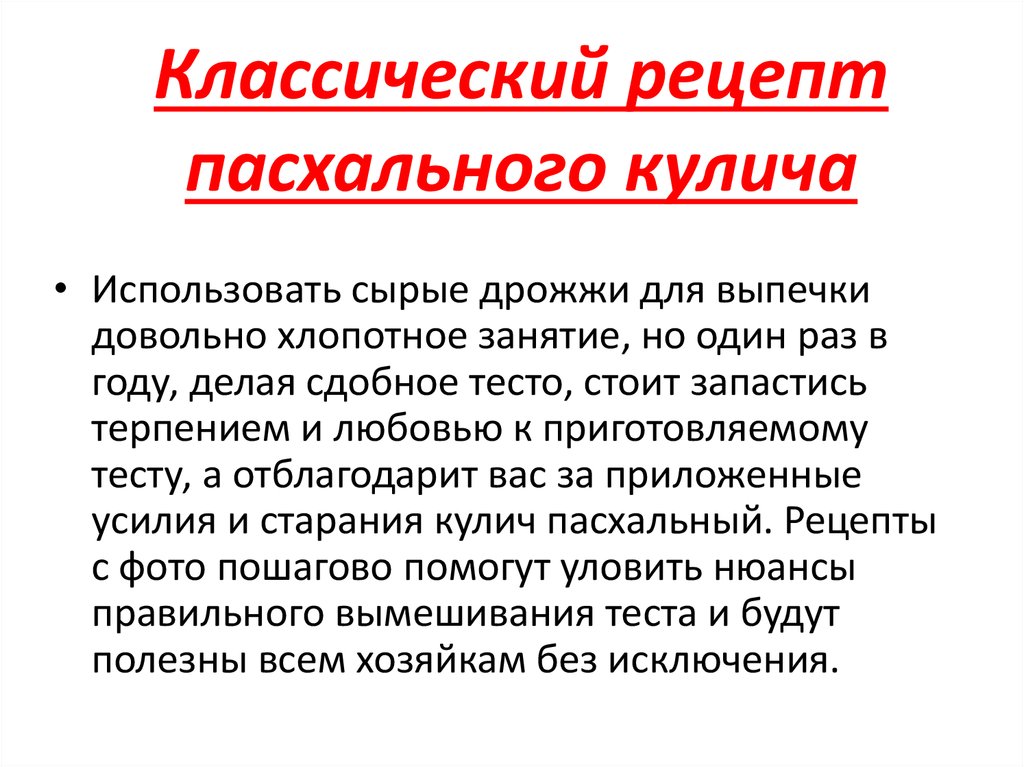 Классический рецепт пасхального кулича