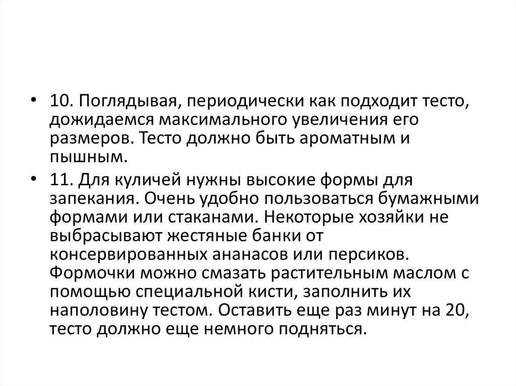 • 12. Куличи хорошо пропекаются за 45 минутпри 180 градусах, духовой шкаф во время