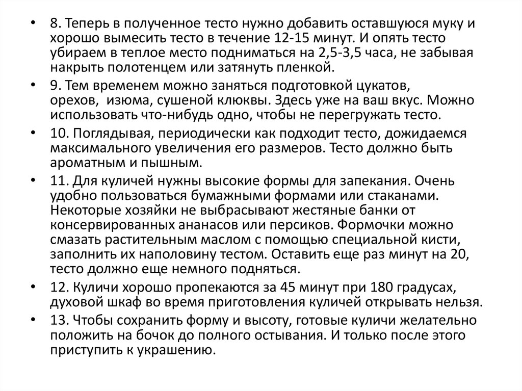 • 12. Куличи хорошо пропекаются за 45 минут при 180 градусах,