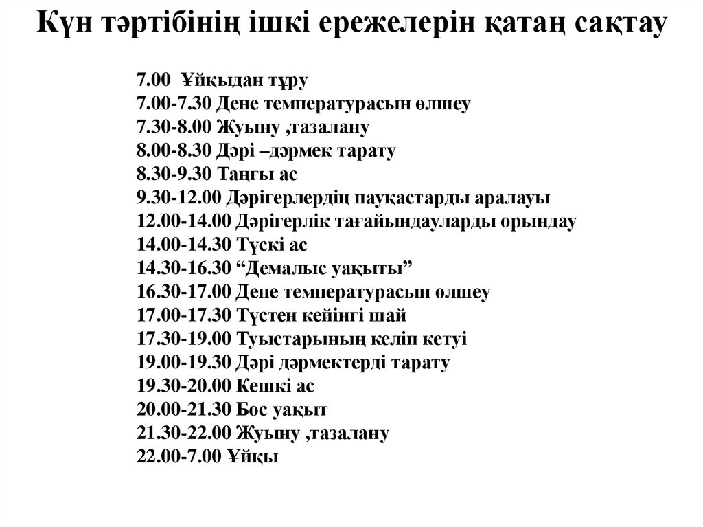 Күн тәртібінің ішкі ережелерін қатаң сақтау7.00 Ұйқыдан тұру