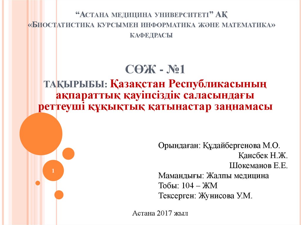 1. “Астана медицина университеті” АҚ «Биостатистика курсымен информатика және математика» кафедрасы