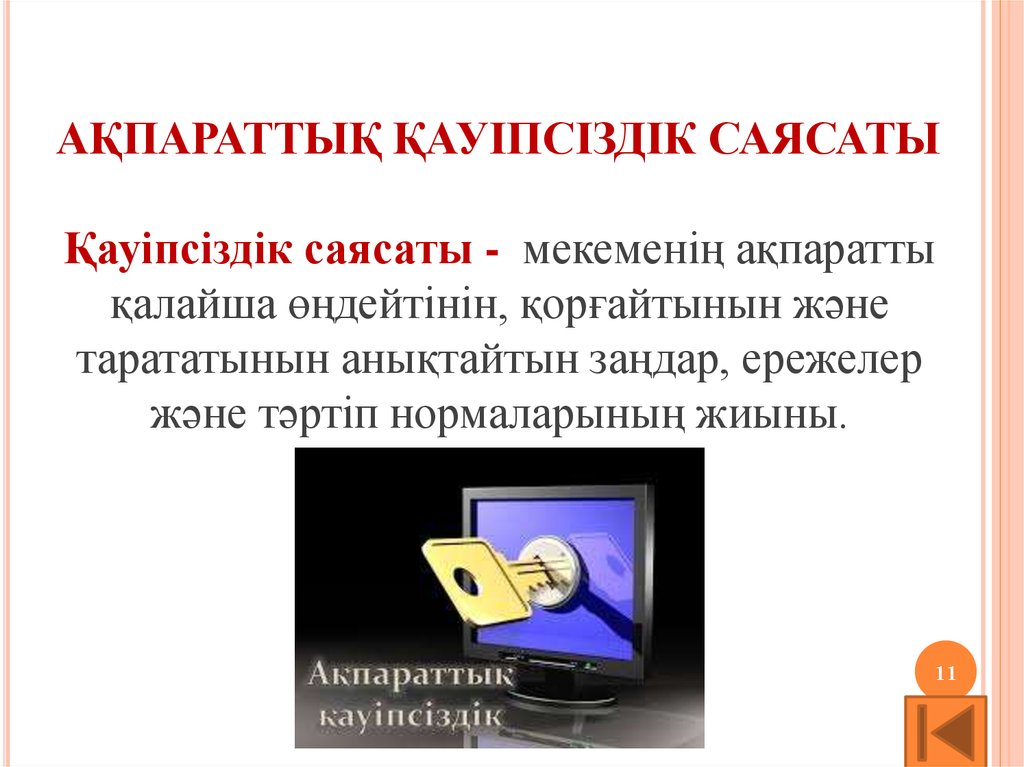 АҚПАРАТТЫҚ ҚАУІПСІЗДІК САЯСАТЫҚауіпсіздік саясаты - мекеменің ақпаратты