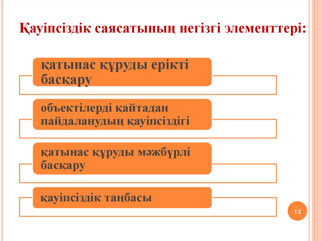 Қауіпсіздік саясатының негізгі элементтері:қатынас құруды ерікті