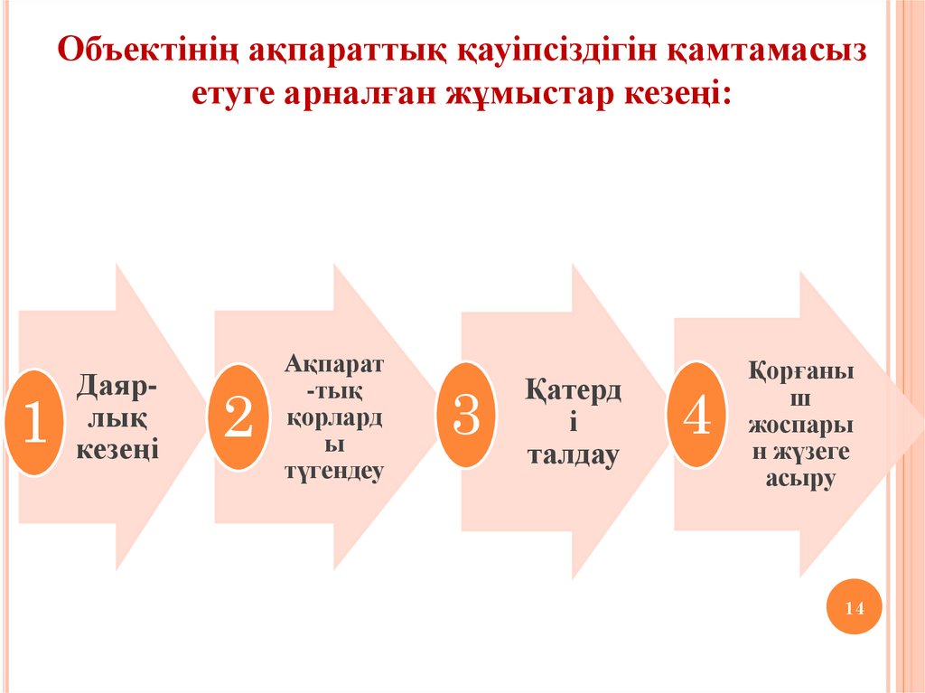 Объектінің ақпараттық қауіпсіздігін қамтамасызетуге арналған жұмыстар кезеңі: