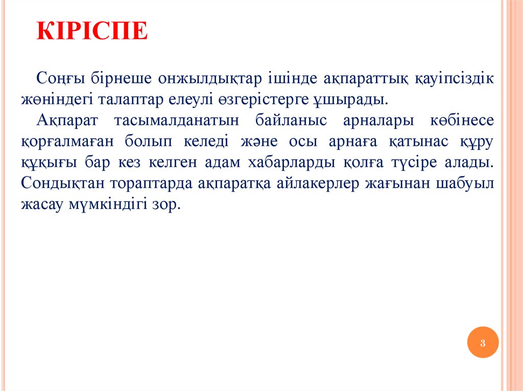 КІРІСПЕСоңғы бірнеше онжылдықтар ішінде ақпараттық қауіпсіздік