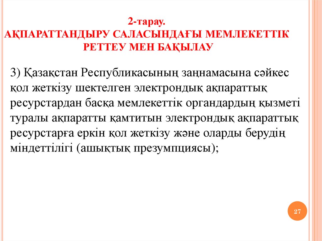2-тарау.АҚПАРАТТАНДЫРУ САЛАСЫНДАҒЫ МЕМЛЕКЕТТІК