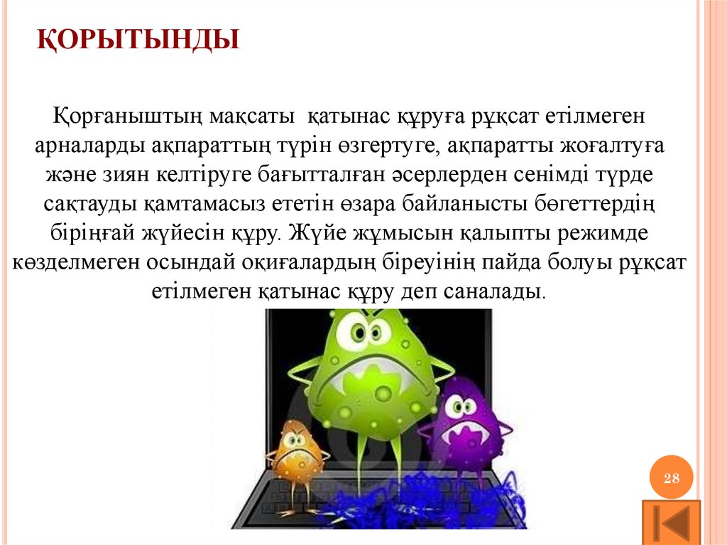 ҚОРЫТЫНДЫҚорғаныштың мақсаты қатынас құруға рұқсат етілмеген