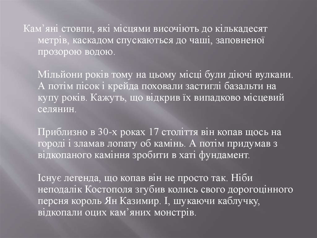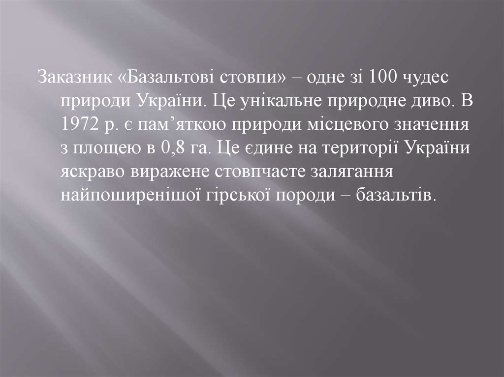 Заказник «Базальтові стовпи» – одне зі 100 чудесприроди України. Це унікальне природне диво. В