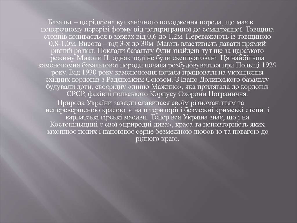 східних кордонів з Радянським Союзом. З Івано Долинського базальту