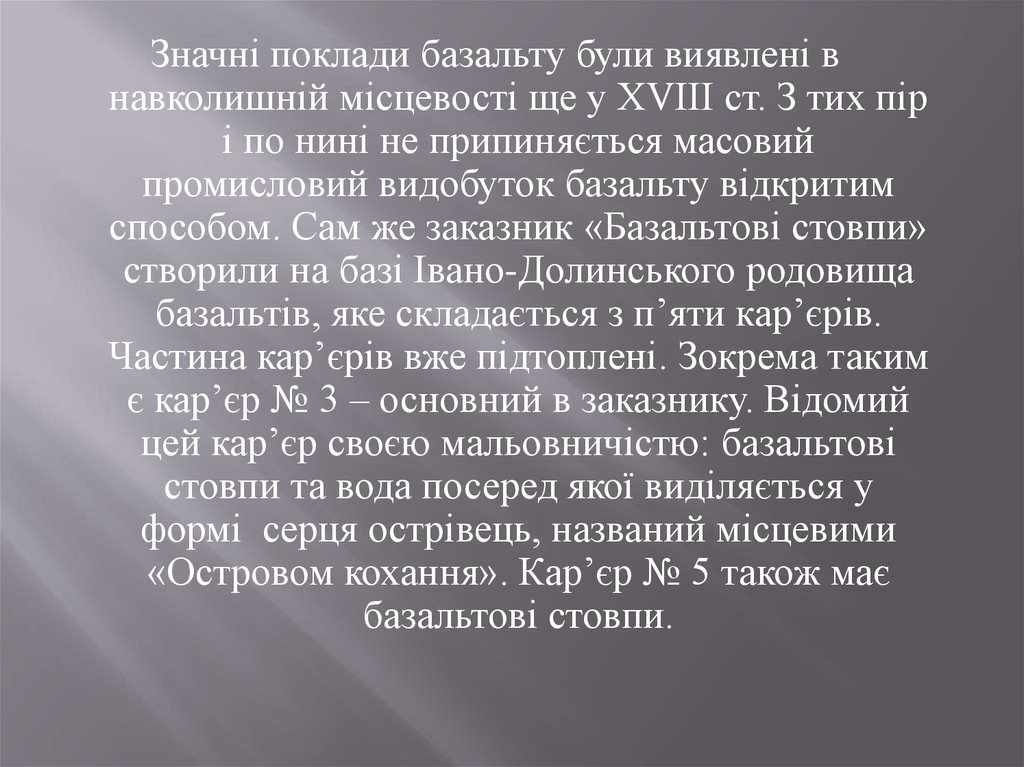 рівний розкіл. Поклади базальту були знайдені тут ще за царського