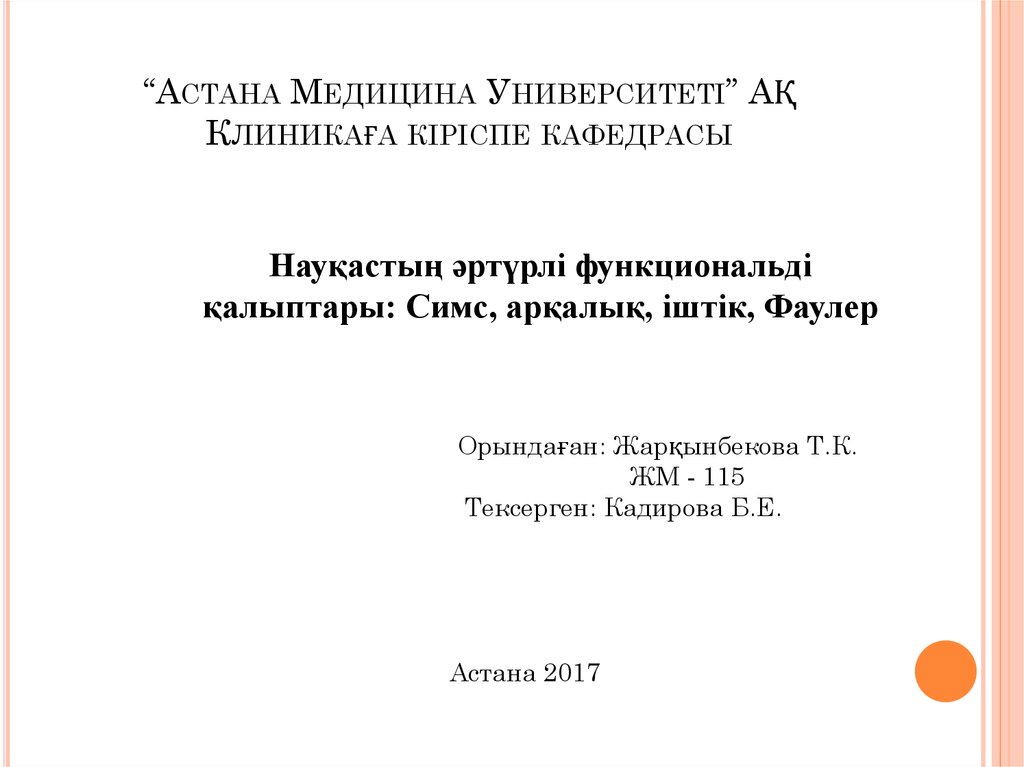 “АСТАНА МЕДИЦИНА УНИВЕРСИТЕТІ” АҚКЛИНИКАҒА КІРІСПЕ КАФЕДРАСЫ