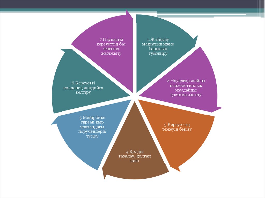 1. Науқаспен амандасу, жағдайын сұрау, келісімін алу.2. Кереуітті горизонтальды қалпына келтіріп, жастықты алып тастау.