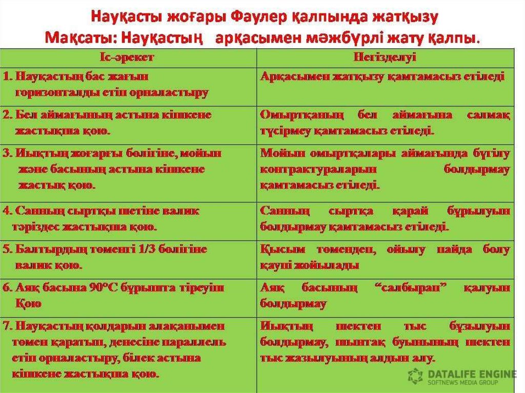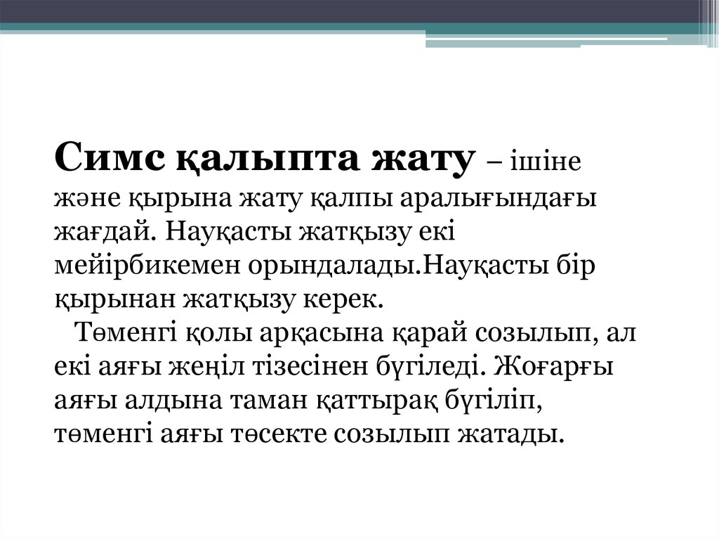 1.Науқастың төсектегі дене қалыптары2. Симс қалыпта жату, қолдану көрсетілімдері.