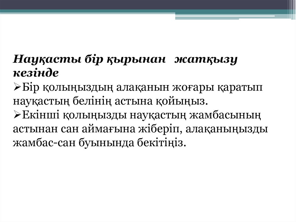 3. Науқасты бір қырына жатқызу кезіндегі іс-қимыл?