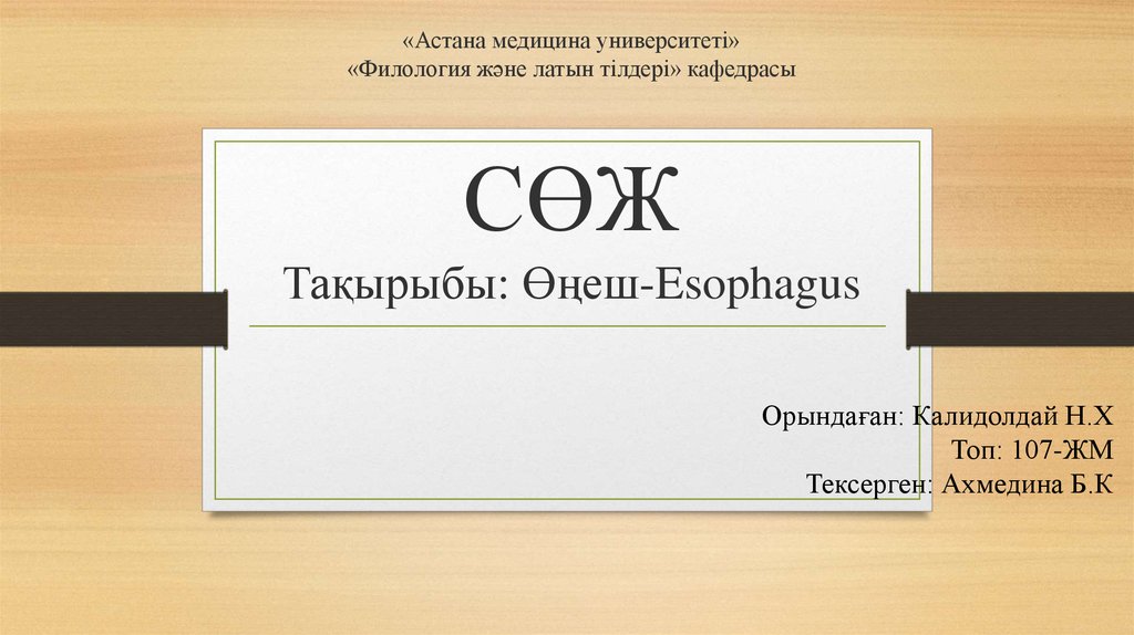 1. «Астана медицина университеті» «Филология және латын тілдері» кафедрасы СӨЖ Тақырыбы: Өңеш-Esophagus
