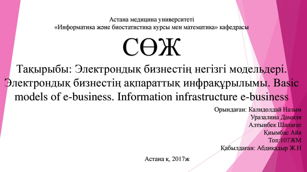 1. Астана медицина университеті «Информатика және биостатистика курсы мен математика» кафедрасы СӨЖ Тақырыбы: Электрондық бизнестің негізг