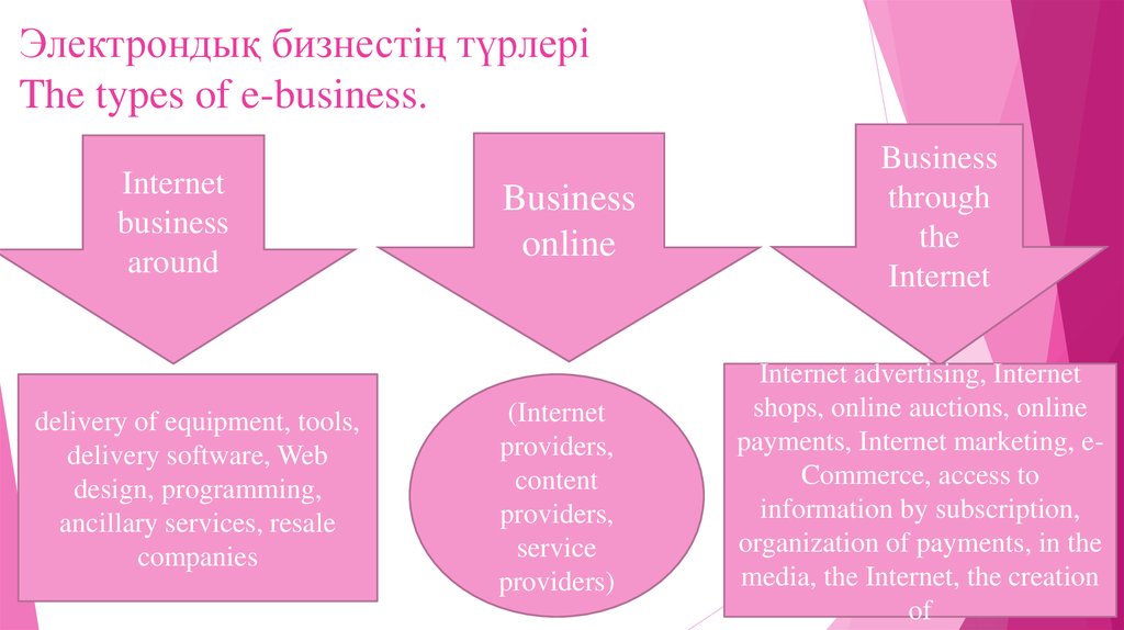 ретінде интернетті пайдалану арқылы түсіндіріледі. Электрондық бизнестің келесі