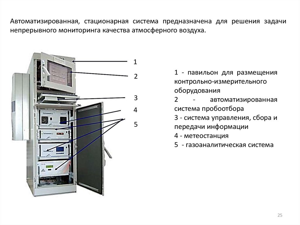 Автоматизированная, стационарная система предназначена для решения задачинепрерывного мониторинга качества атмосферного воздуха.