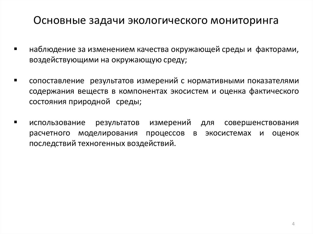 Основные задачи экологического мониторинганаблюдение за изменением качества окружающей среды и факторами,