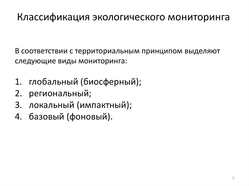 Классификация экологического мониторингаВ соответствии с территориальным принципом выделяют