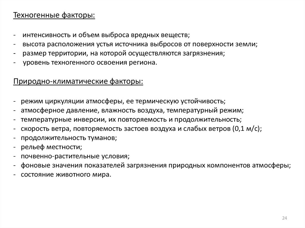 Факторы, влияющие на уровень приземнойконцентрации вредных веществ в атмосфере