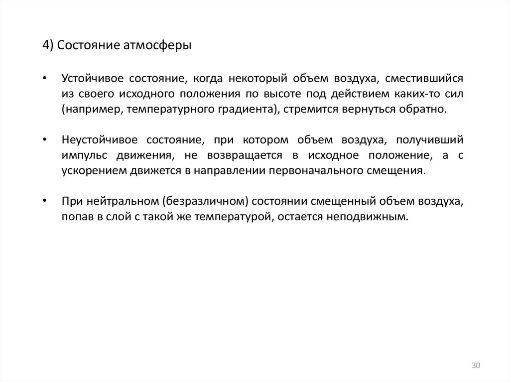4) Состояние атмосферыУстойчивое состояние, когда некоторый объем воздуха, сместившийся